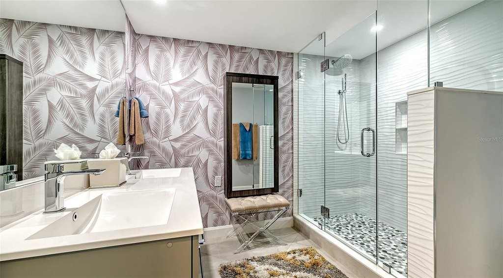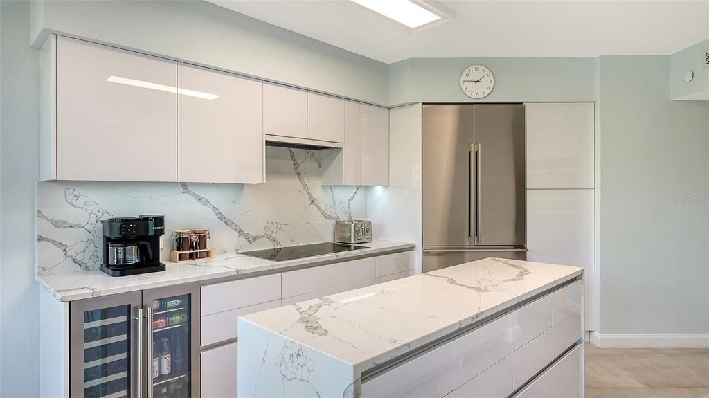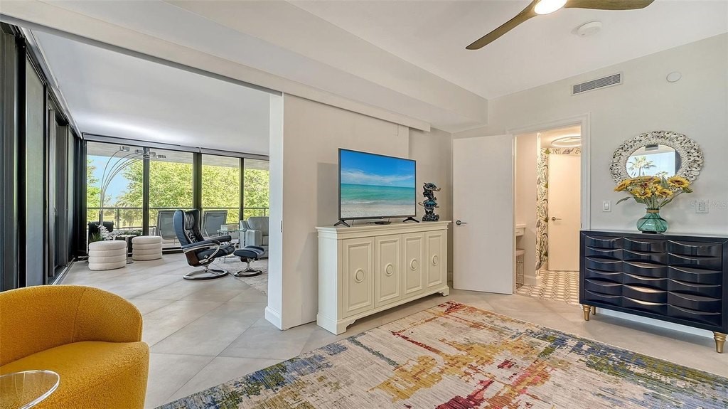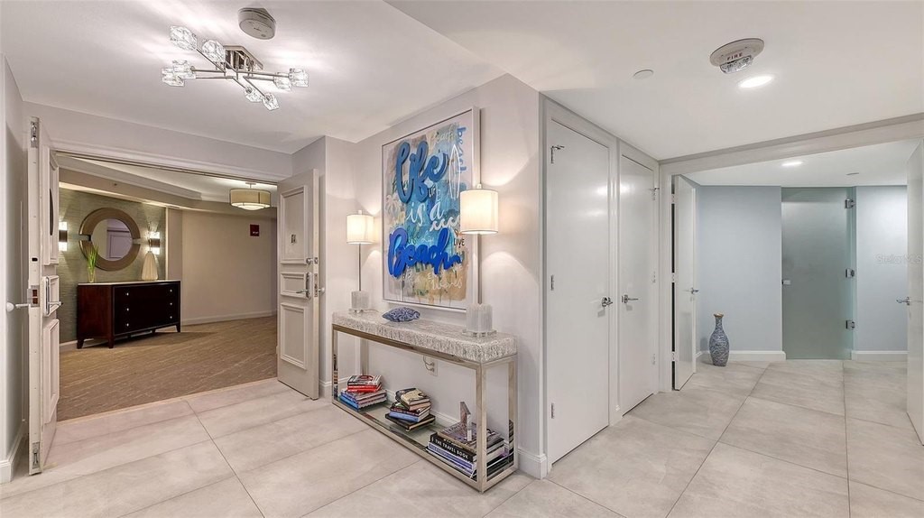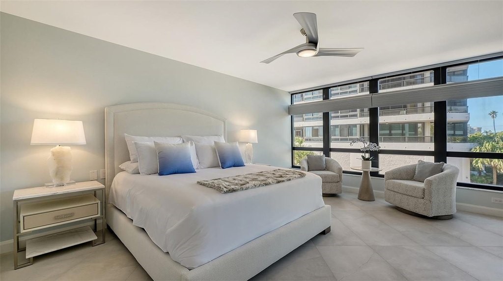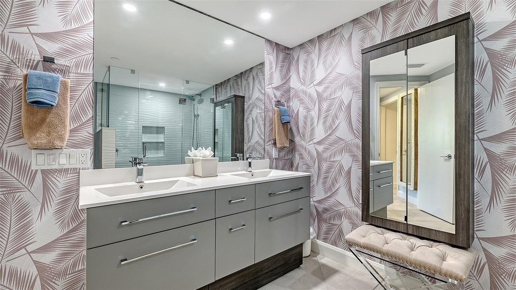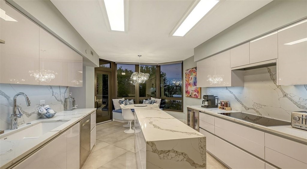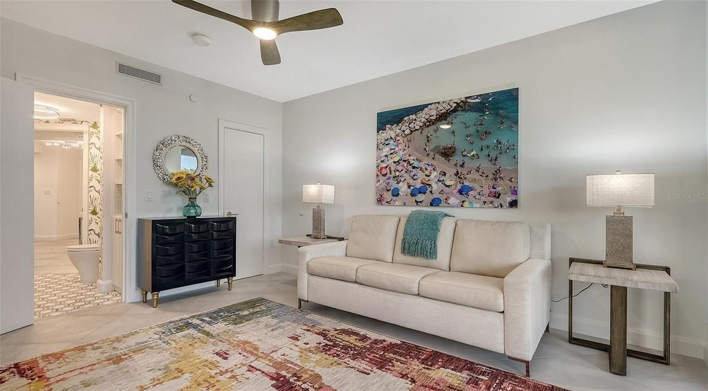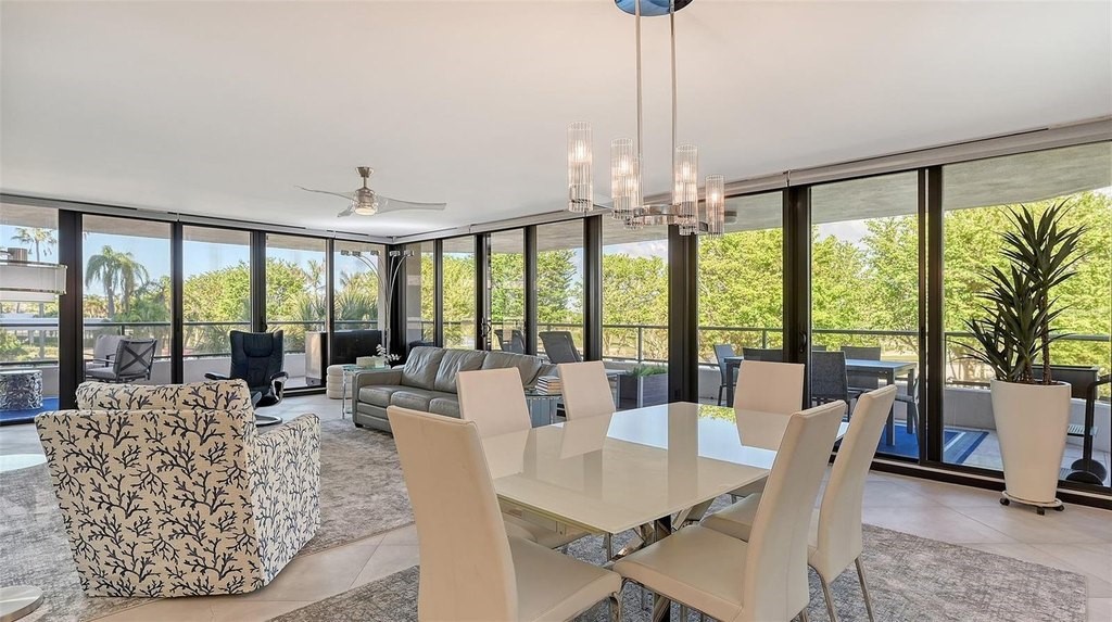 IT’S ALL DONE & PERFECT! Experience the pinnacle of Gulf Coast living at The Sanctuary, nestled behind the gates of the renowned Longboat Key Club & Resort and steps from the beach. This exquisitely remodeled 3-bedroom, 3-bath residence offers breathtaking views of the Gulf and panoramic views of the Longboat Key golf course from the expansive wrap-around terrace that’s complete with PGT impact sliding doors. The newly renovated interior features luxury materials to include large porcelain tile floors throughout, beautiful ledge stone accent wall with a striking 72” linear fireplace in the expansive great room, motorized solar screen window coverings and/or custom roman shades throughout and high-end appliances. The primary suite is a serene, spa-like experience featuring stunning views of the Gulf and direct access to the expansive terrace providing a seamless connection to the outdoors. The bathroom offers a custom double sink vanity, a deep soaking tub and a separate dressing vanity and linen closet with floor-to-ceiling azure tile surrounding both the tub and the shower. The elegant design creates a soothing, indulgent atmosphere perfect for unwinding. The large walk-in closets has an abundance of space & storage. The second ensuite is equally as stunning with high-end features including a double vanity, spacious walk-in shower adorned with wave shaped tiles perfectly complimenting the chic, beach-inspired design and a built-in mirrored make-up vanity. The third bedroom is also enjoyed as a den. The clever, seamless “sliding door” creates smart privacy to quickly transform the den into a cozy bedroom offering both short and long-term guests a comfortable retreat. This residence offers breathtaking views & sunsets every evening over the Gulf. It has a separate garage entry & 2 “Townie bikes” to convey. Relax in the luxury & privacy of 24/7 gated security, heated pool/spa with cabanas, beach chaises & umbrellas, Fitness center, 4 Har-Tru tennis courts, Resident only clubhouse for social events. It’s all here to host large family gatherings or intimate parties. IT’S ALL DONE & PERFECT!